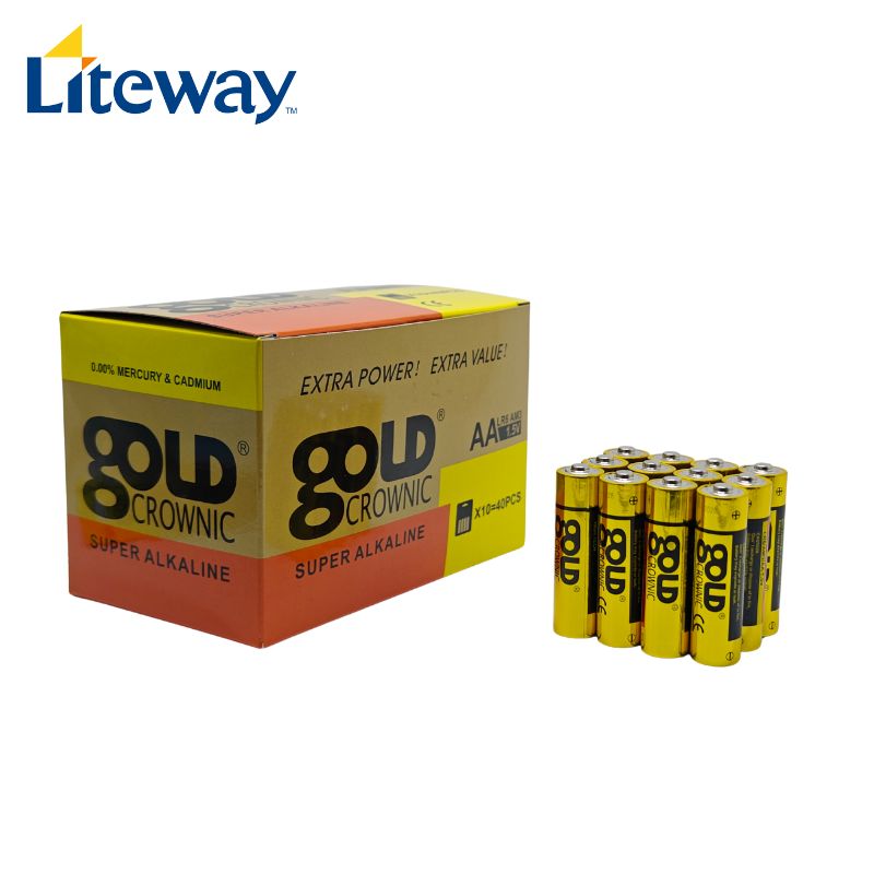 Liteway is a battery manufacturer, supplier, and exporter from China. Our product range includes alkaline batteries, carbon zinc batteries, button cell batteries, and rechargeable batteries. Goldcrownic AA LR6 1.5V Alkaline Battery is one of our products, and it belongs to our Goldcrownic brand.